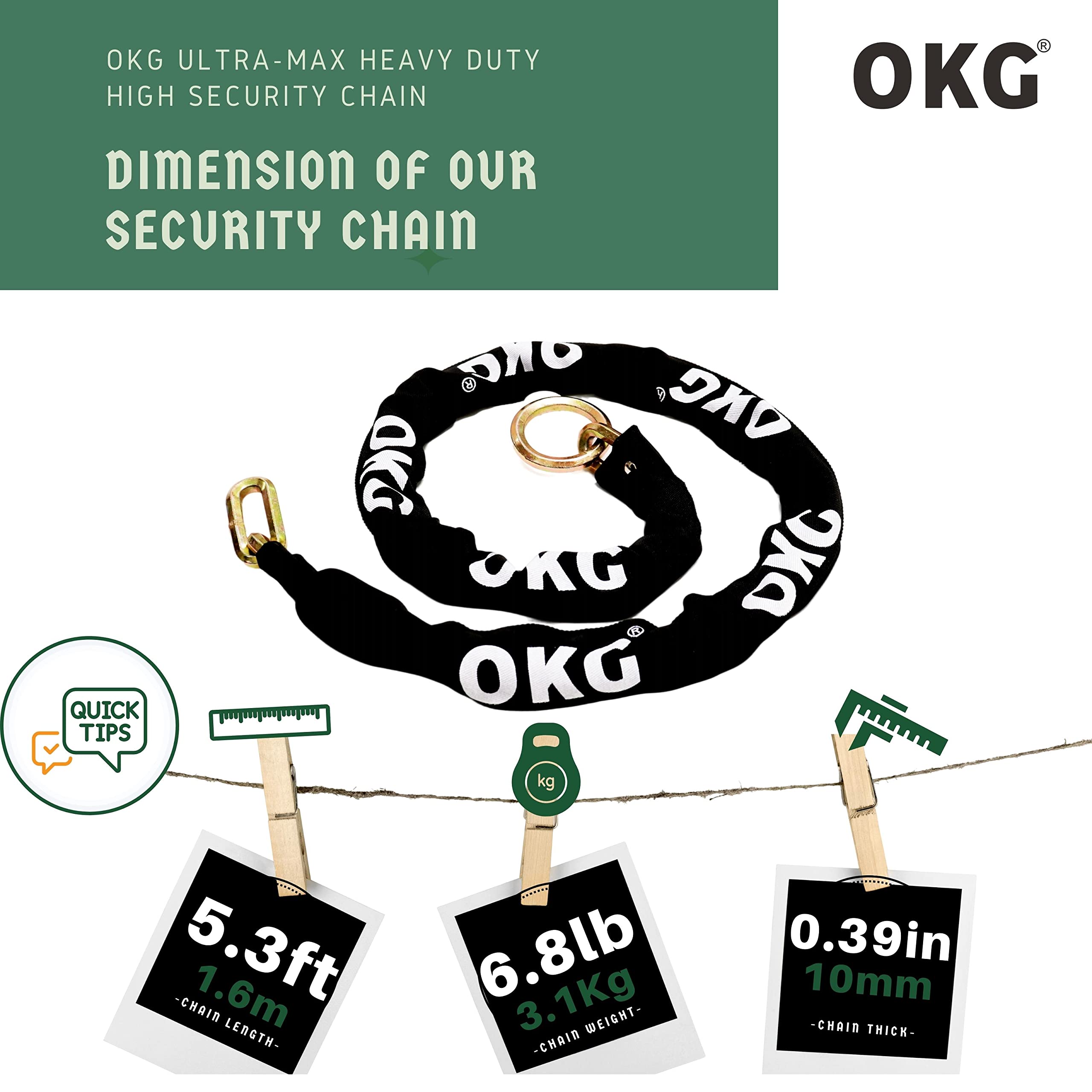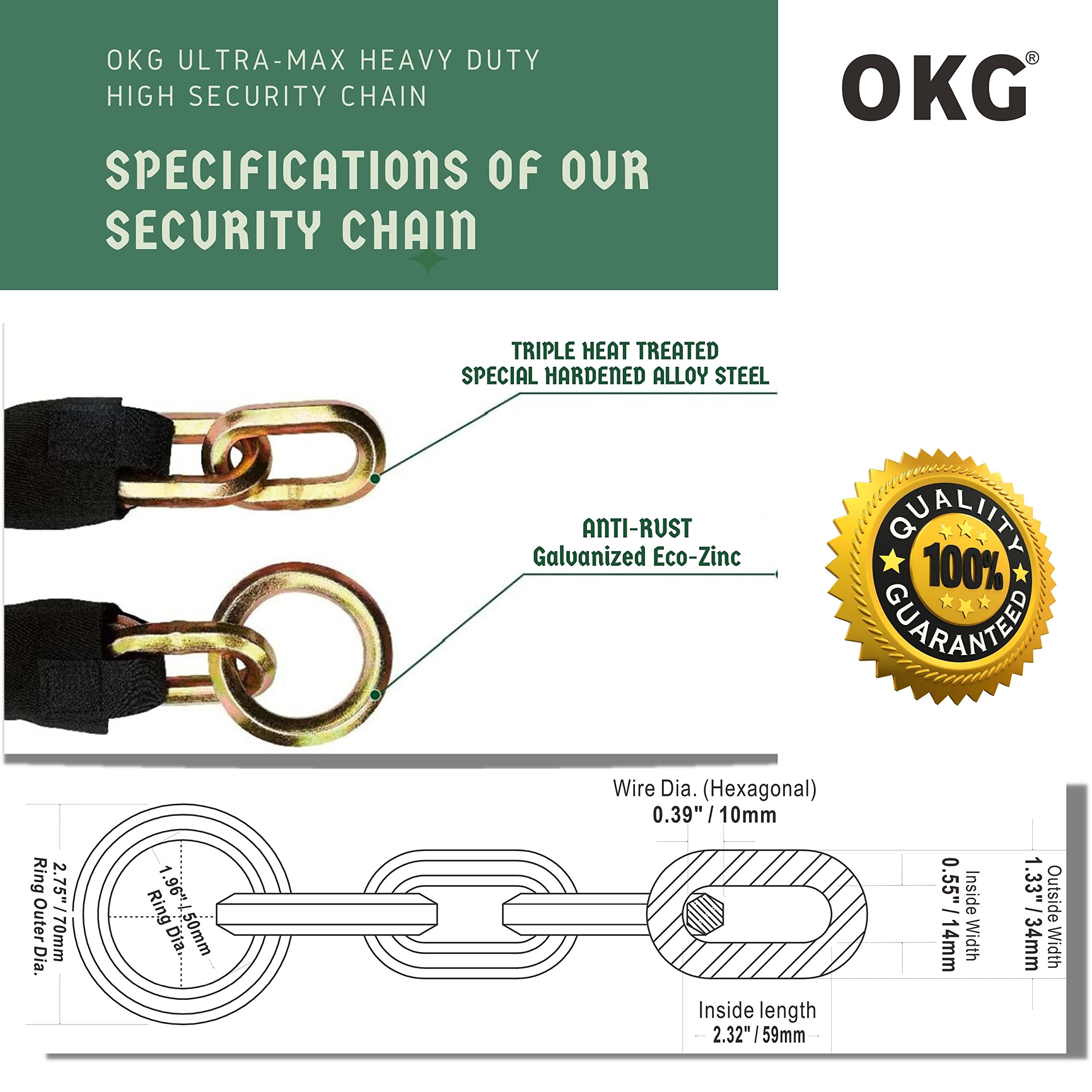 - ✓ SPECIAL O-RING NOOSE LOCK CHAIN DESIGN -OKG HEXAGONAL WARRIOR ultra security chain is different from the normal square steel chain or round cut proof chain, O-ring design at the end can doubles the effective working length. Multifunction security locking method can maximize the value of anti-theft chain link.